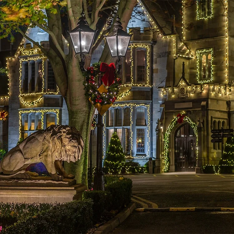 The festive lantern lit avenue … the castle adorned in twinkling fairy lights… the warmth of an open fire… decadent Christmas decorations… an atmosphere of enchantment… lavish dining… glittering parties… laughter & lively conversation… there is no better place to celebrate this special time of year.